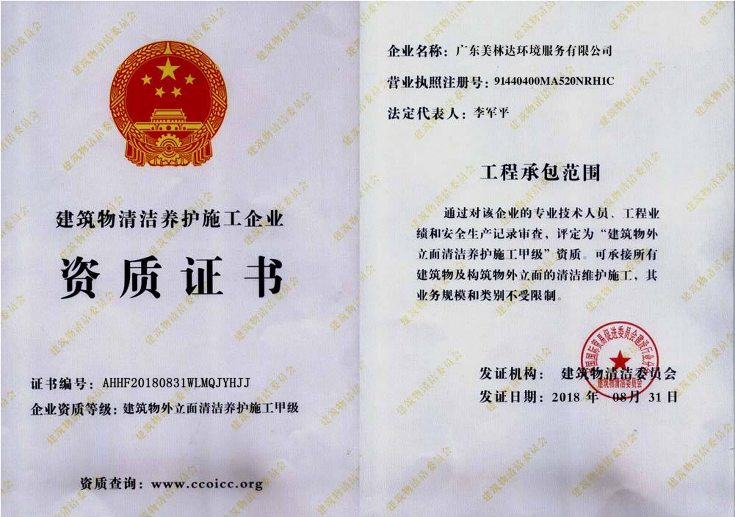 清潔保養施工資質證書
